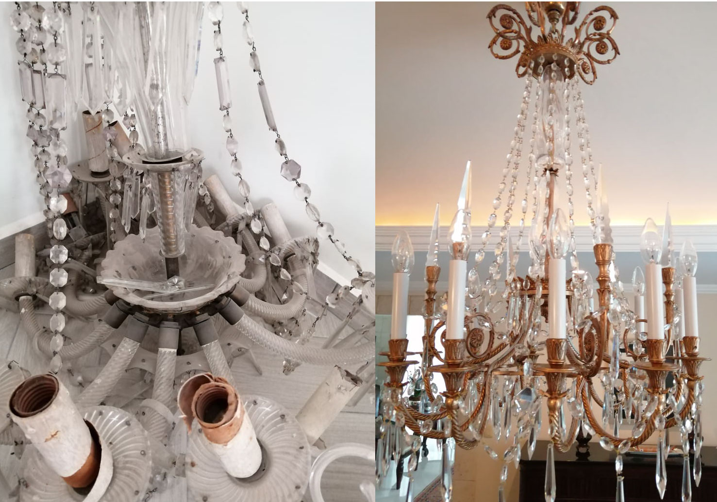 Métodos, técnicas y procesos artesanales que permiten restaurar piezas dañadas y/o faltantes de candiles y objetos ornamentales finos, para otorgar un acabado final genuino e imperceptible, como el día de su realización.
